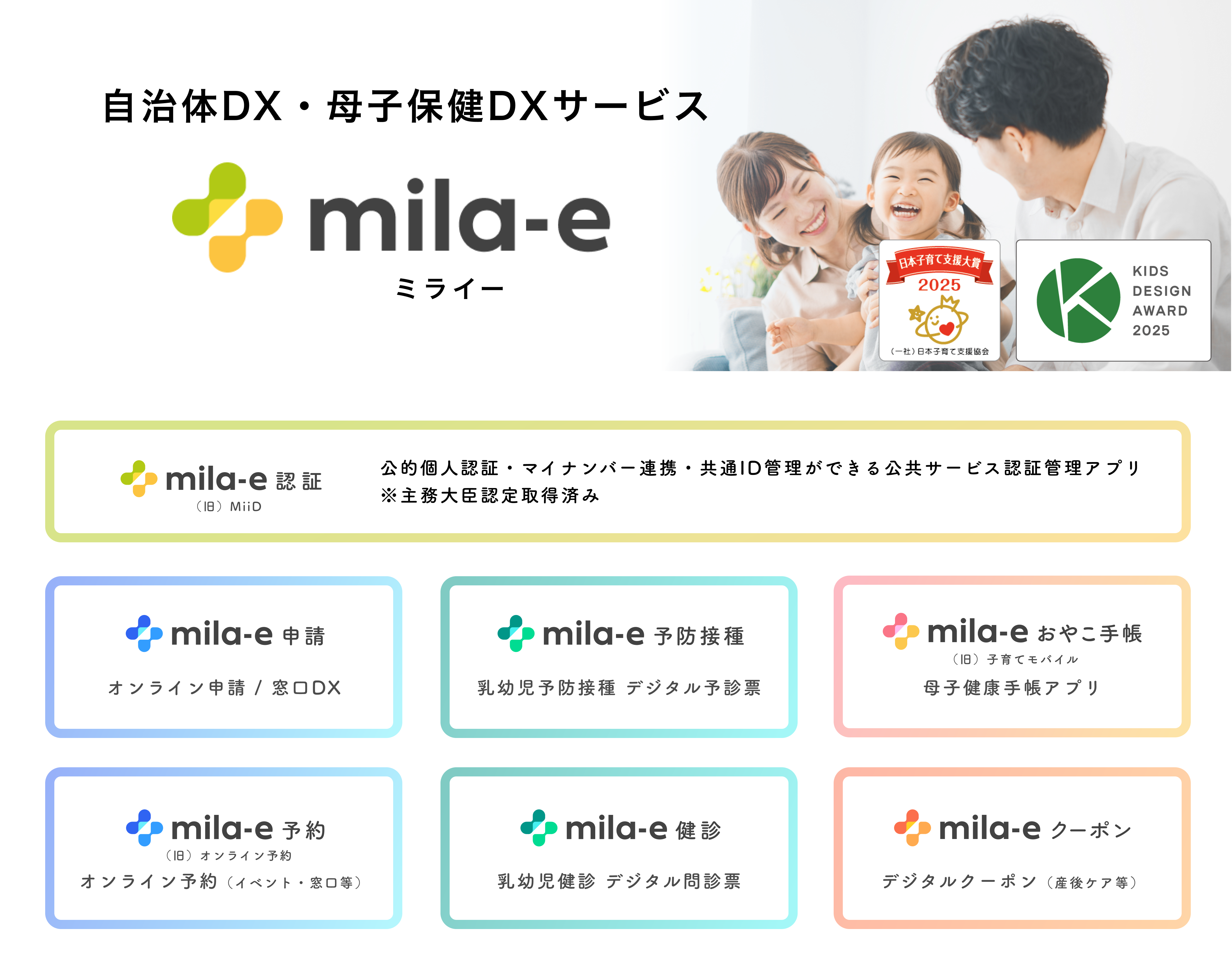 展示ブースでは、2025年度日本子育て支援大賞 および キッズデザイン賞を受賞した 自治体DX・母子保健DXサービス「mila-e」シリーズを中心に、母子手帳・子育て支援アプリ[ mila-e おやこ手帳]をはじめ、デジタル予診票・問診票、デジタルクーポン、窓口申請DXサービス、オンライン予約サービス、公的個人認証サービス、障害者支援アプリなどをご紹介します。